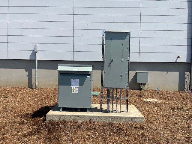 - Provided all new 480/ 277v 100 amp metered exterior site pedestal and repaired the existing utility feed from the power company transformer.